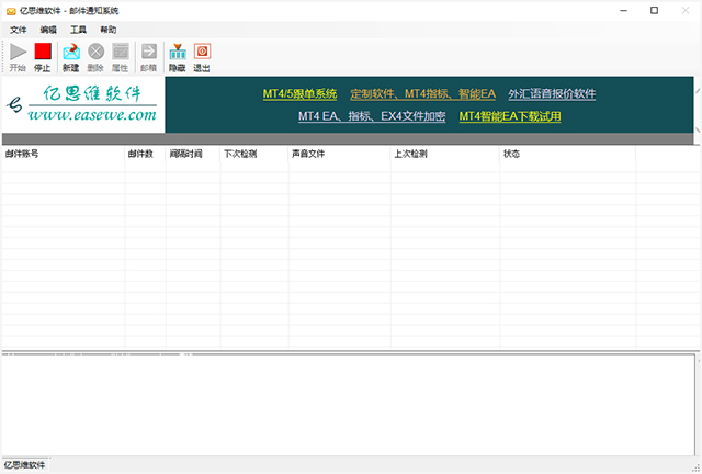 亿思维邮件通知软件是一款非常好用的邮件通知工具,该软件不但绿色安全、功能实用,而且还能够帮助用户自动检测邮箱中是否有新的邮件,如果有,它会通过提示音来提醒你新邮件的到来,以免错过了重要的邮件。而且该软件仅提供查看功能,不会下载邮件服务器中的任何信息,是您工作中必不可少的好帮手!