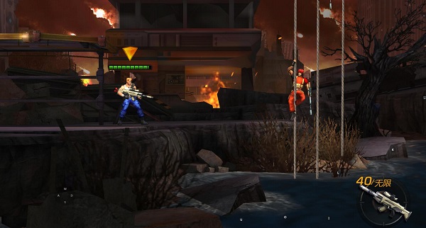 3、《魂斗罗:归来》将利用全新的双屏系统,因此游戏的动作空间更大,让玩家可以有更多的活动区域,但是双屏的大型BOSS战需要玩家去寻找并摧毁庞大怪物的弱点。游戏中还将加入“抓钩”装备,因此玩家可以攀爬到较高的位置。还可以让玩家们可以躲避一些致命的威胁,这会给游戏带来全新的战斗思维和戏剧化元素,让玩家在紧张刺激的游戏过程中回忆那些逝去的记忆。