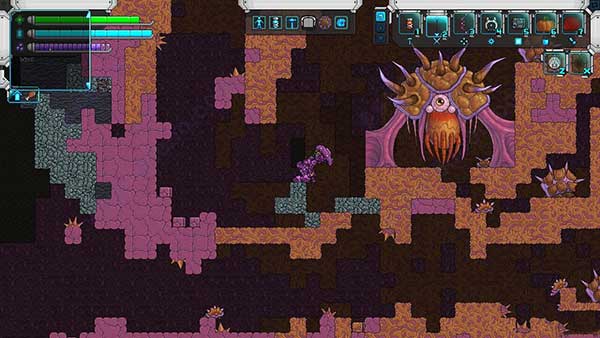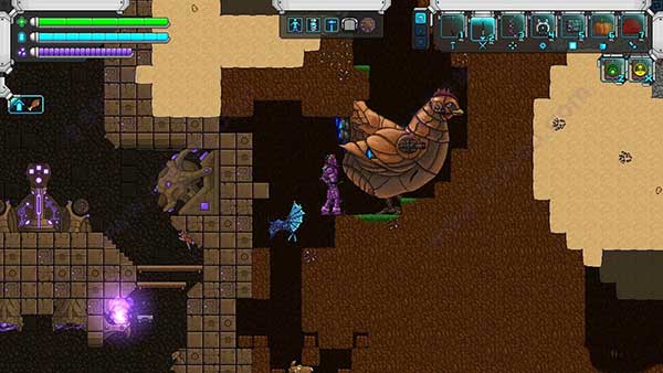 蚁后的位置也比较好找。只要你往下探索的时候,挖到了黄色的蚂蚁巢穴砖块,那么你离蚁后的位置已经不远了。仔细寻找,它就在一个刁钻的地洞深处猫着。由于它并不会移动,因此也是非常容易被打败,打败后会掉落一件蚁爪物品。