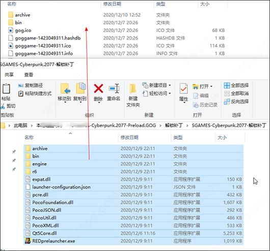 5、把赛博朋克2077最新游戏补丁,全部复制到游戏根目录中替换;