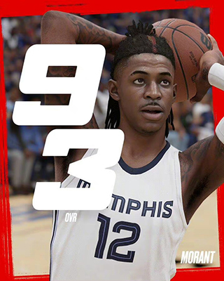 NBA2k官方公布了NBA2k23中的扣篮能力值排名,贾-莫兰特和锡安-威廉姆森并列最高。