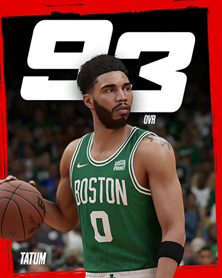 塔图姆是年轻一代的佼佼者,上赛季带领凯尔特人进入总决赛,如果表现更好点,能力值有望提升一些。