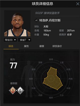 丹尼尔斯属于典型的单一突出球员,85的空位中投,91的三分空位投篮是丹尼尔斯的本钱。虽然丹尼尔斯不具备任何中投热区,但三分热区却非常可观,除了顶弧位置,几乎全是热区,出手动作中速,并不难掌握。配合铜色角落专家的加持,丹尼尔斯的底角三分还是非常有把握的,虽然78的速度不够快,但无球跑位也勉强够用。