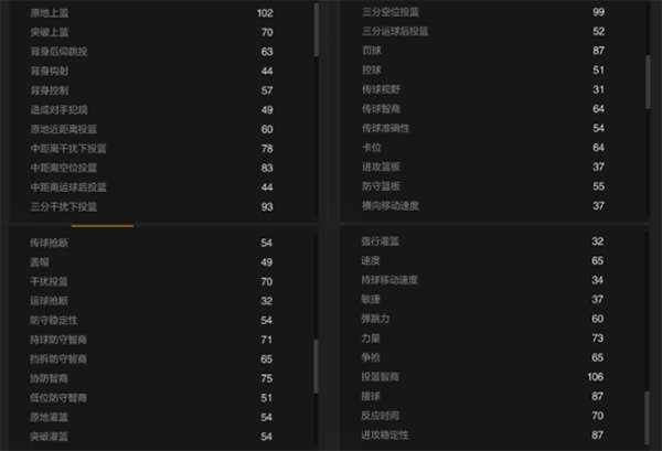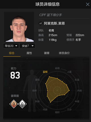 总结一下,普朗姆利的进攻手段比较单一,除了站扣、内切和空接外,很难找出其他的稳定得分手段,在徽章加持下,普朗姆利的挡拆进攻能力算是不错的。当然普朗姆利的真正作用是一个内线的防守者,无论是单防,还是协防,普朗姆利均处于合格线以上水准,盖帽及跑跳能力出色,遗憾的是普朗姆利的身高臂展实在是尴尬,不说内线,即便是在锋线中,普朗姆利的臂展也实在是太差了。