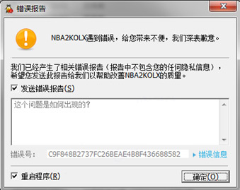 答:请勾选左侧两个选项,点击确定。提交报告,以协助官方更好地定位、解决问题之后,重新启动客户端即可。