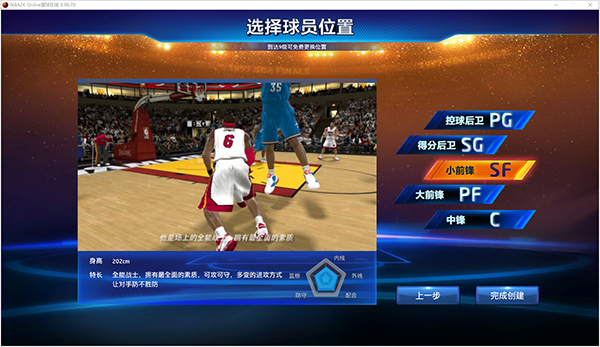 13、选择在球场上喜欢的站位,点击完成创建;