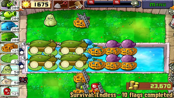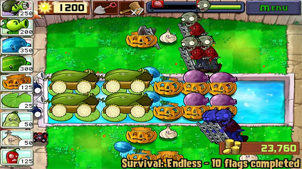 1、新增白天前院、黑夜前院、水池黑夜、屋顶4个无尽模式,没有最难只有更难!