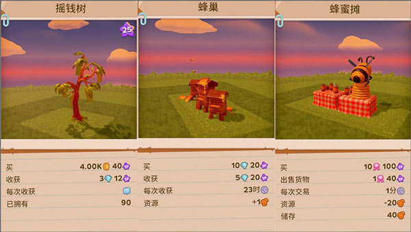 基于最开始说的一个季节17分钟来换算,摇钱树的话是68分钟可以收获一次,蜂巢是固定23小时收获一次,所以请按照个人喜好需求来安排。