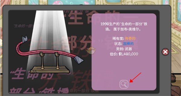 2、然后找到物品点击放大镜图标对其进行鉴定。