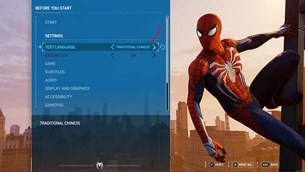 5、然后在text language当中,选择traditional chinese,保存即可;