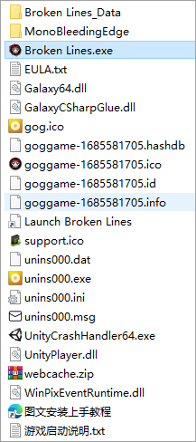 3、双击文件Broken Lines.exe开始游戏;