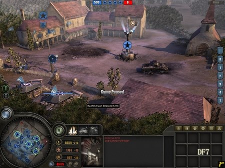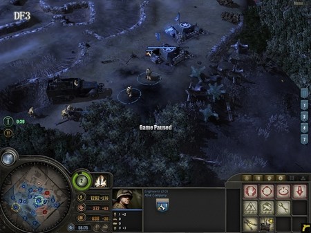 为何需要半履带呢?作用:1、屠兵,2补兵(恐怕不少人不知道靠近这玩意后按“R”有何功效吧 ),狙击手镇守DF5,DF5是防御的重中之重,这里将担当阻击德军的中流砥柱,所有的重机枪布置在这里,把刚才RM拾起的两门57mm安插到这里,并把解救出来的Rangers,凯旋的RM全部安插到这里。约摸5分钟以后,德军开始突袭,但是主要的兵力集中在西面,不用理他,后山工兵接着造防御。经验值很快会满1点,最好升级步兵防御工事,这时步兵就可以建造防御了,拉上DF5防区的3级的RM,冒着零星的枪弹(这就是为何用RM不用工兵的原因),在DF5的盘山小道上建造防御工事。彻底阻断德军上山的道路。