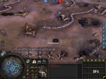 这时候初期造的两队工兵也应该就位了,让他们分别在DF3,DF4的两处位置建造如图的路障,可以看到DF3的阵地前已经是一片焦土。