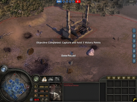 最后的5分钟,黎明就要来到了!这也是敌人最疯狂的时候,这时HQ附近的小镇遭到了偷袭,指挥官要你迅速赶跑敌人,别管他,继续守你的HQ和高地,否则你会中了敌人?(指挥官?)的调虎离山计。一会你会发现你的HQ附近会有潮水般的德军向你涌来!铁拳掷弹兵,Stug,4号,应有尽有,刚才偷袭小镇的步兵也会涌向你这里,如果你刚才把镇守总部的兵力调走,你哭都会来不及!没关系,105mm先下马威,远程炮火再洗一遍,AT穿甲弹招呼一通,德军就只剩下喘的气了。猎犬在外线放放冷枪,拣拣落单的,基本上这波德军就大势已去了。最后的两分钟,把你F5防区的游骑兵,HQ附近的工兵叫出来,猎犬放哨,上清静的后山和小镇去收拾一下被占的资源点就可以了。这时候你的任务也基本上完成,小镇,HQ,高地,兵营坦克厂,勋章一个也不会少,资源点也统统是你的。你非常华丽的赢得了战斗!