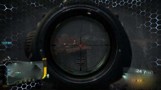 1、先知与塞可到达灌木丛附近,要在5个地方寻找外星人用的武器,在高处有火炮的攻击,要不断使用隐形隐蔽,能量快不够的时候就躲着掩体后面回复。