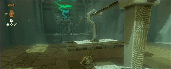 13、将钩子挂在旁边的滑轨上,跟随滑动的平台到达神庙终点完成该神庙。