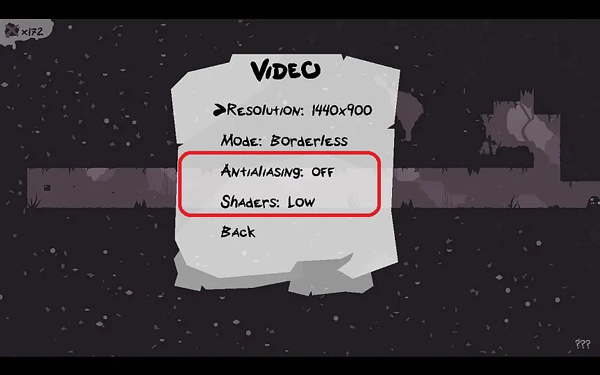 在图形选项中,把Antialiasing(反锯齿)关闭,把Shaders(着色器)调到低档。