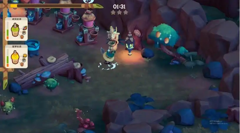 延续《胡闹厨房》的混乱操作,但加入战斗元素。玩家需在料理过程中切换武器防御敌人,或通过陷阱将野兽引入烹饪区直接获取食材,实现“打猎-烹饪”无缝衔接。