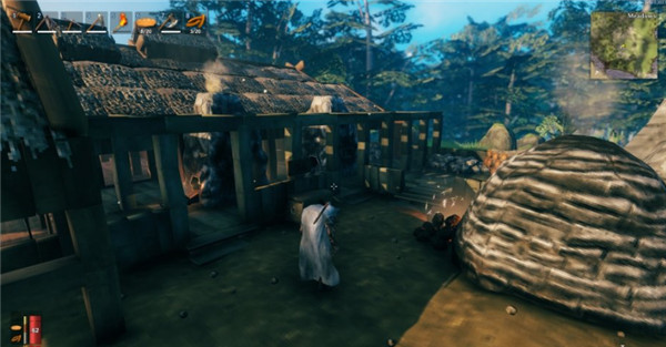 2、造好工具台,小房子,床,之后出去打猎主要是猪,肉烤了可以加生命最大值,皮碎片是下面一段时间核心资源之一。