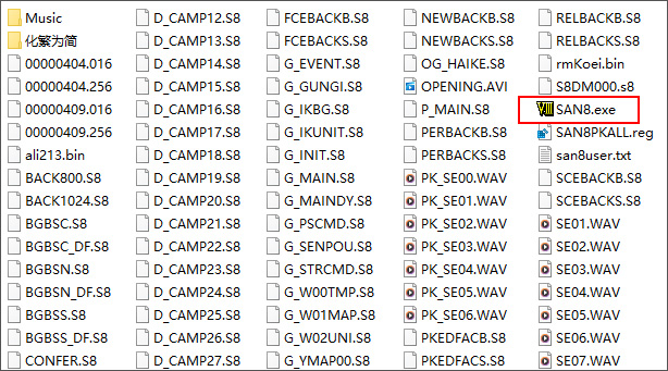 1、下载解压,得到三国志8中文版,直接解压,双击SAN8.exe开始游戏;