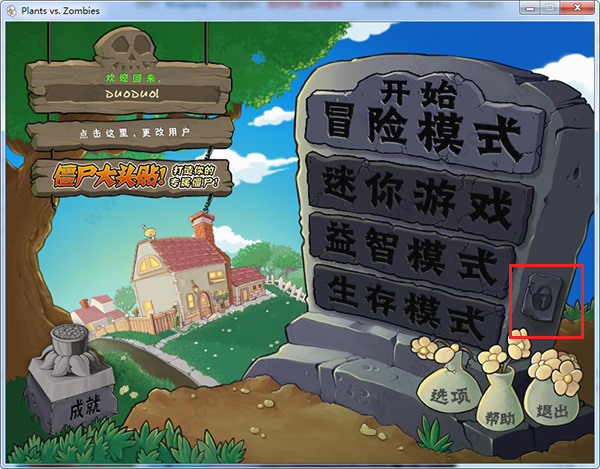 3、我们看到此时游戏并没有解锁全部关卡,这时候找到墓碑旁边的小锁;
