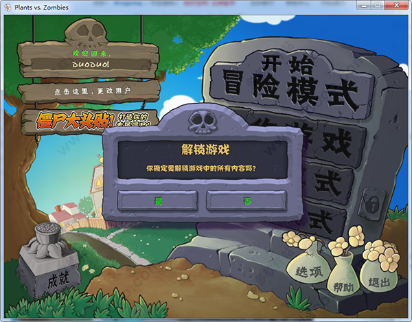 4、点击之后提示解锁游戏全部内容,点击是即可;