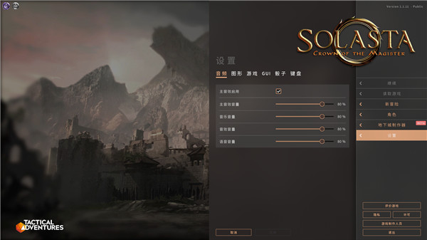 2、进入游戏后,点击设置中的音频选项,用户可以自定义背景音量、语音音量、音效音量等
