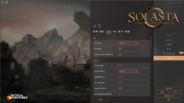 4、在游戏中,玩家可以设置语言、显示小城、保留随机种子、敌人群组先攻等