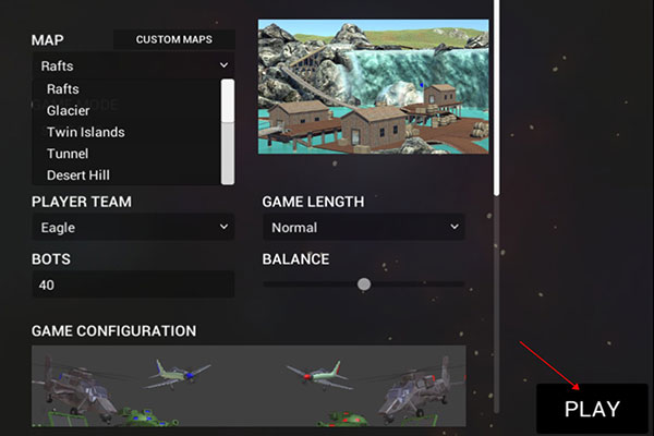 地图——选择战斗地图,目前可以选择岛屿、沙尘暴、寺庙、群岛,类似沙尘暴这样庞大的地图可以使用滑翔机。