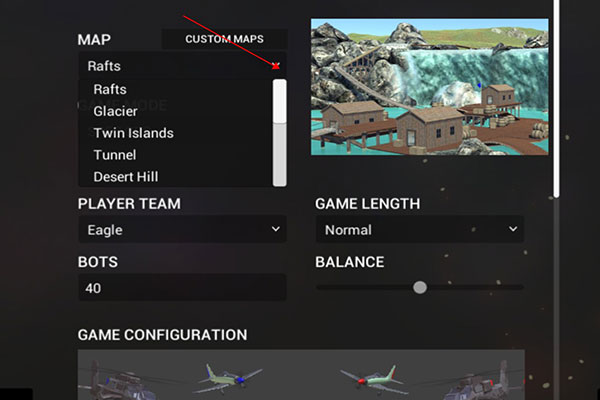 6、在这里玩家可以设置一些参数,比如箭头所指项玩家可以选择游戏地图;