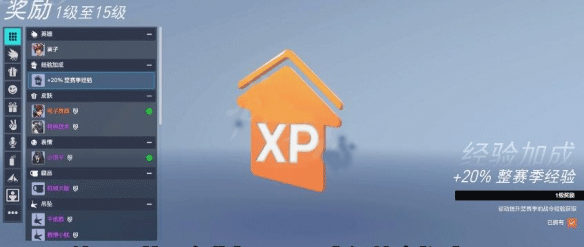 完成一场对局有20%的经验加成(与战令任务无关)。