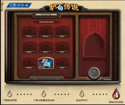 1、练习模式:与代表不同职业的电脑对手进行对战,可以解锁新的英雄和基本级卡牌。