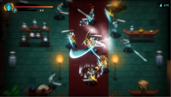 当我们的角色使用剑返时,却仿若神怒,周遭的一切可破坏物体,会在此时破碎,浸染酒水的敌人也会立刻被火焰缠身。而在5秒钟之内,葫芦也会燃起熊熊烈火。在玩法上,成为了远程喷火,近战刷新喷火的功能,然后再由远程喷火终结敌人的玩法。