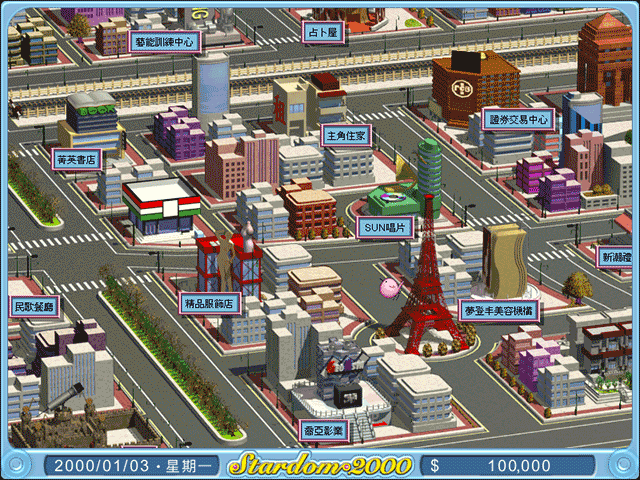 别担心,考虑到玩家的适应程度及接受程度,《明星志愿 2000》简体中文版中还是会保留了原先培养性较高的简单玩法,你可以选择轻松有趣的游戏方法去成为艺能天王和追求一个自己心爱的女明星(难度较低),也可以选择有难度的玩法,就是自己一方面是艺人另一方面身兼自己心爱的MM的经理人的玩法来玩(比较有难度)。多样的游戏玩法和结局可以适合不同玩家的口味,不过我相信你还是会努力尝试那些比较刺激、难度的玩法的。《明星志愿2000》简体中文版将在2000年9月份上市,说不定到时候又会掀起另一股策略养成型游戏的热潮。