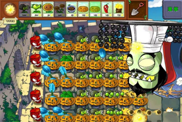 阵型出来后对付普通僵尸基本没什么花头,只要保证火力足够、南瓜换的及时、阳光够用,就OK(南瓜CD时间不够用可以选个变身茄子,这样就有两个南瓜了)。