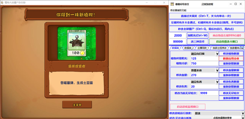 4、然后点击修改器“直接过关领奖”即可直接通关并获得新植物。
