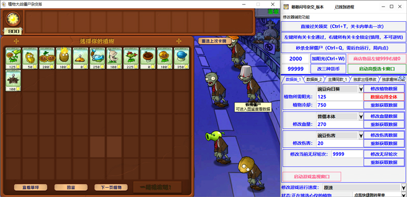 3、局内修改-专属功能-常用作弊功能,新增“随机盒子快速随机”“锁定植物可卸”“挑战模式有推车”