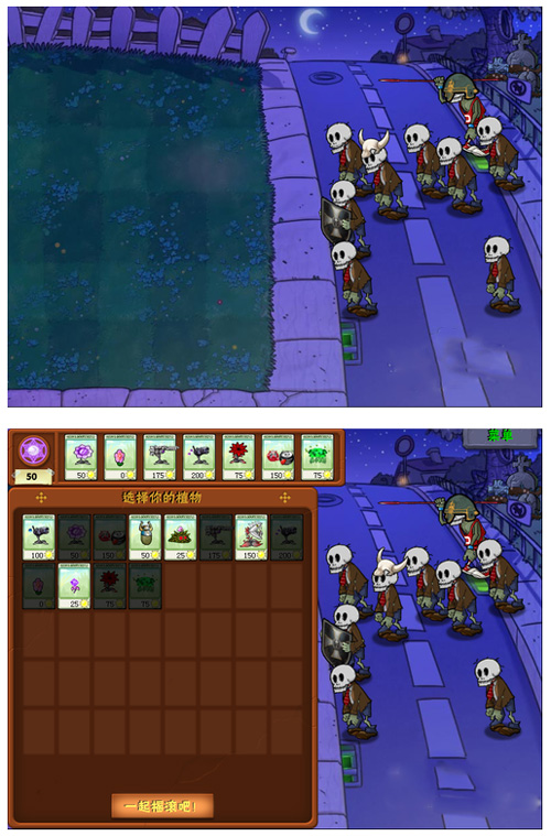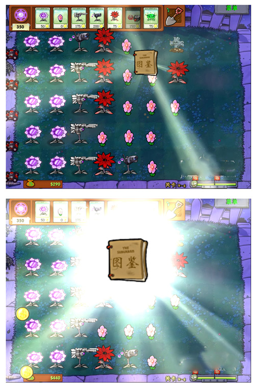 特点:敌人强度差,突破能力差,阳光生产效率高,场面开阔。