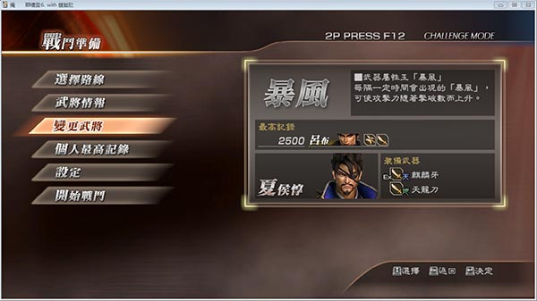 9、在进入游戏前,会有战斗准备,可以选择挑战路线、武将、查看记录等;