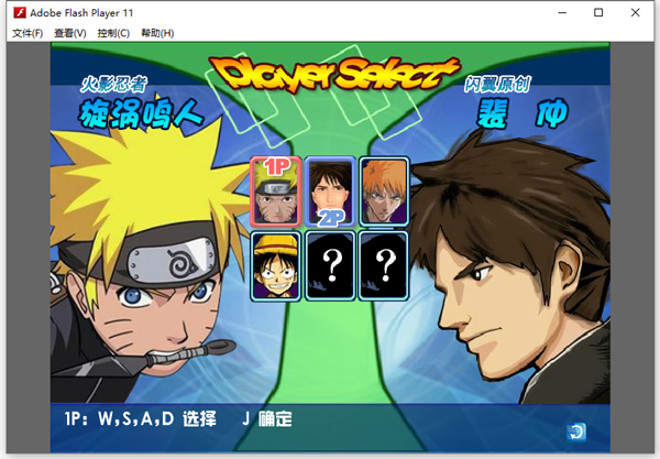 2、游戏操作:1p:W.S.A.D选择,J是确定