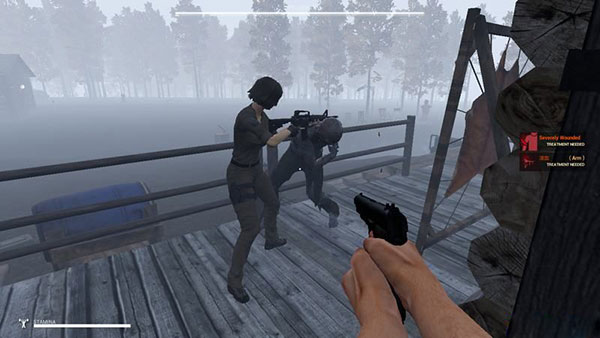 当迷雾到来时,如果僵尸发现玩家并入侵,幸存者会开枪射击僵尸保卫营地。