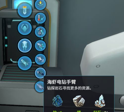 鼠标左键点开白色区域,也就是海虾号的控制台。按背包中的电钻手臂左键就可以成功装备了;