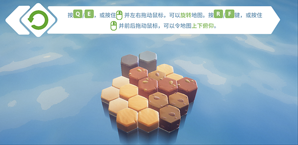 2、按Q/E或按鼠标住并左右拖动鼠标,可以旋转地图。按R/F键,或按住并前后拖动鼠标,可以令地图上下俯仰。