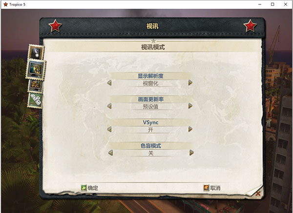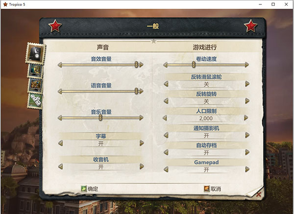 2、解压之后,双击Tropico5Steam.exe就可以启动游戏了,进入游戏之后,游戏默认就是中文的,点击选项可以进行一些设置;