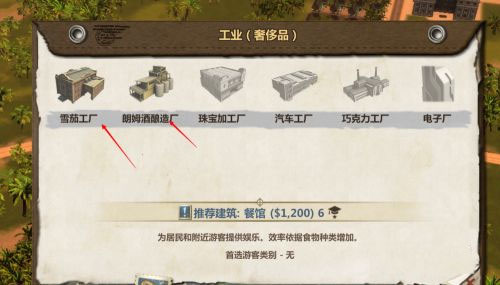 关于初级原料建设。 中期的雪茄厂,兰姆酒场,罐头厂,服装场和后期的时尚工厂都需要大量的初级原料。