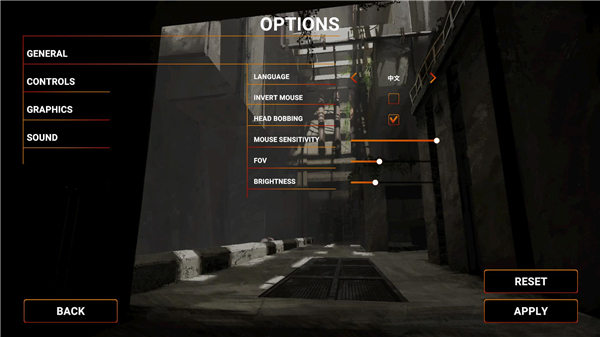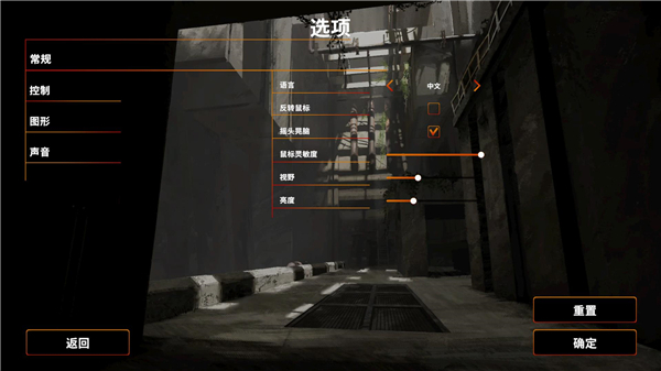 7、进入游戏选项界面,玩家可以根据自身情况设置语言、鼠标灵敏度等项目。