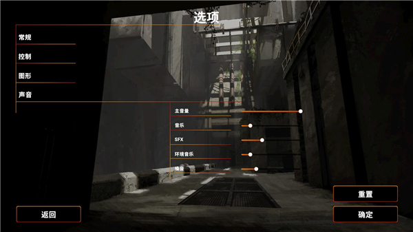 10、进入声音界面,玩家可以设置游戏主音量、音乐、环境音乐等大小。