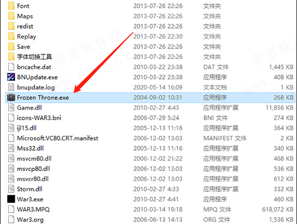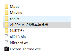 1、在本站下载好资源后解压,得到魔兽争霸3冰封王座1.24e电脑版游戏包,找到里面的“Frozen Throne.exe”启动文件双击启动;