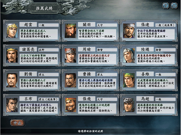 3、在图中给出的武将众选择你要扮演的武将