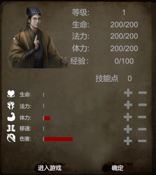 开局伤害4体力1加点,符剑士主加伤害副体力,伤害点满就主点体力加生命,因为前期开荒太靠道剑+附魔,困难模式下怪堪比血牛,1级的你连路边上的狗都要砍半天,所以伤害是首选,体力是次要。
